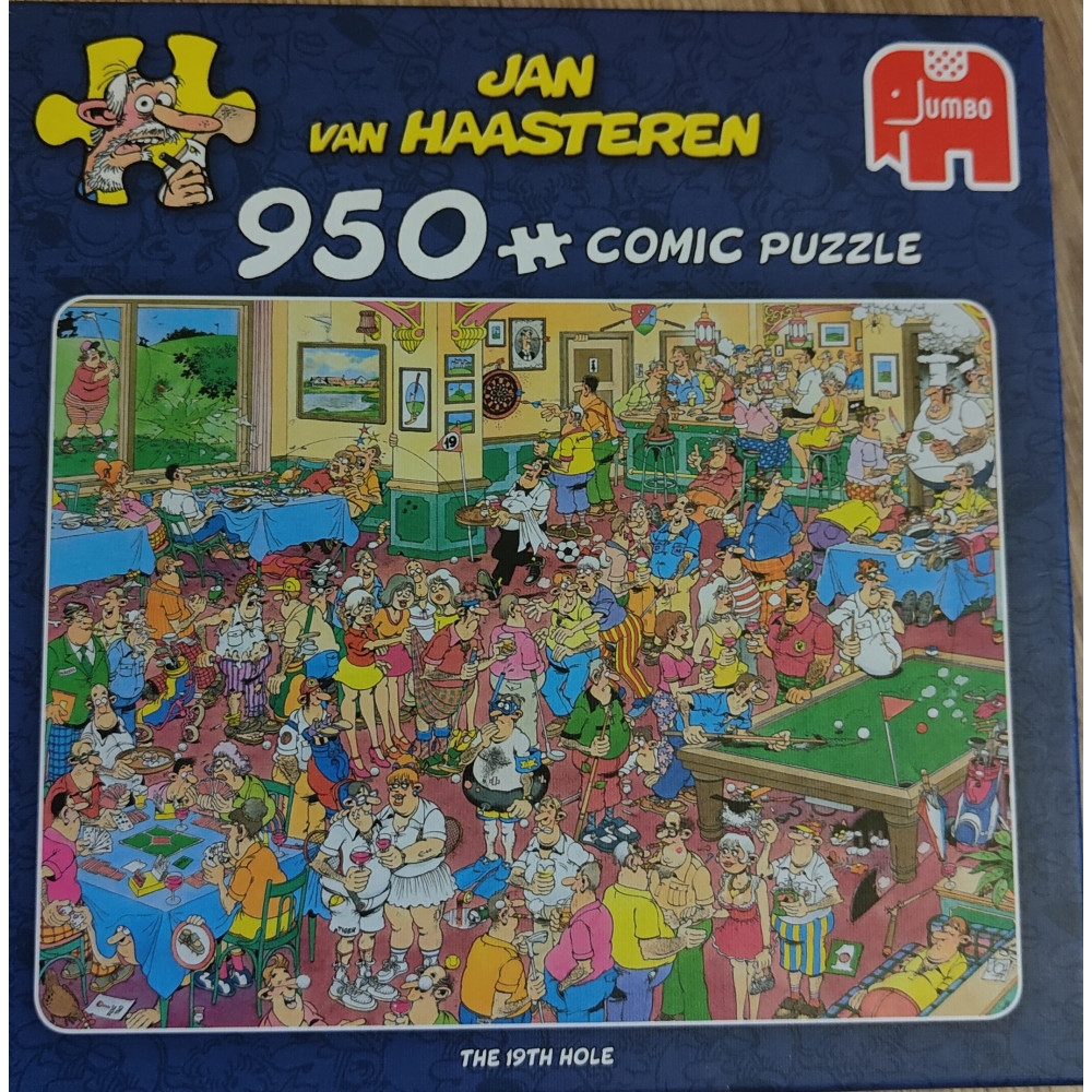 De Jan van Haasteren – The 19th Hole puzzel (950 stukjes) is een humoristische en chaotische legpuzzel van Jumbo. Het thema draait om de “19e hole” – de bar of club waar golfers na hun ronde samenkomen – en zit vol met typische Van Haasteren‑grapjes en verborgen details