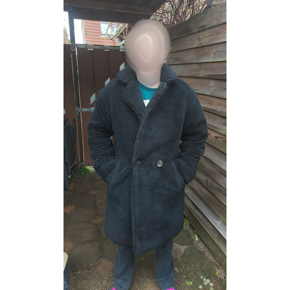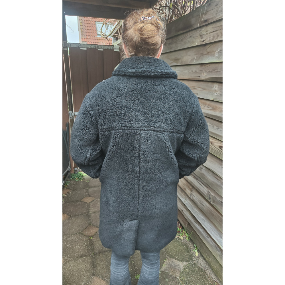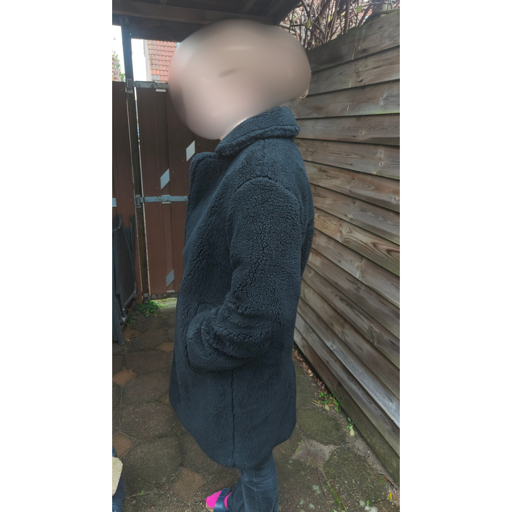 Mooie zwarte dames winterjas "Teddy" in maat 36.